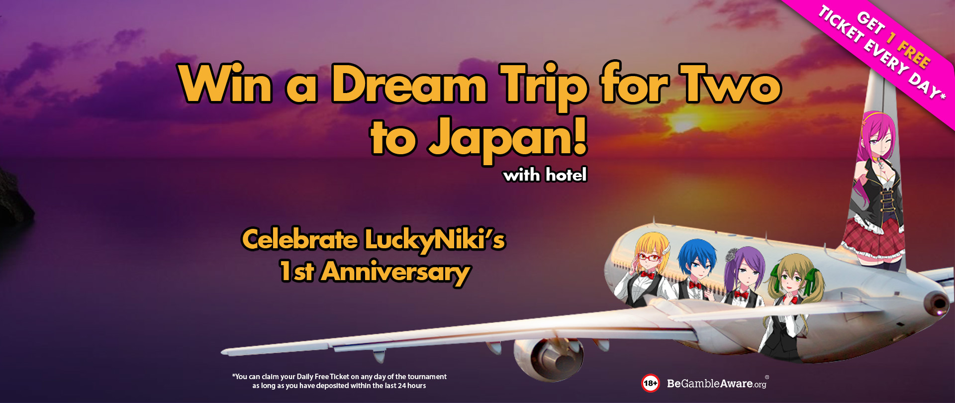 Tickets for the "Dream Trip to Japan" can either be bought for £1 or received for free. 1 Free Ticket can be claimed daily if a deposit is made in the last 24hours. 1 Free Ticket can be claimed every Friday if a deposit was made previously. No winnings can be gained from any Tournament Spins.Terms & Conditions apply. Read now